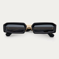 The Ryder is a slim bold frame takes inspiration from biker goggles, bridged together by a metal piece that subtly resembles the front fork of a motorcycle. The slim yet striking lens compliments the form of the acetate, creating a compact frame with a very bold attitude. This frame is efficient in proportion for maximum impact.