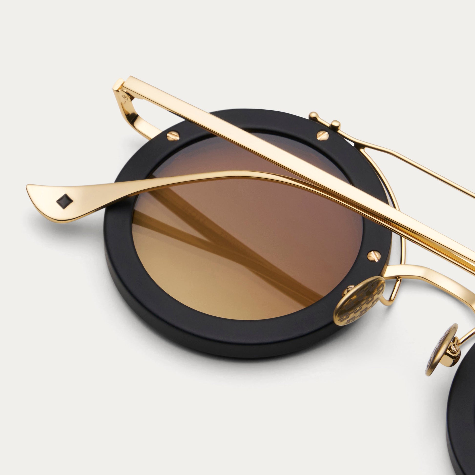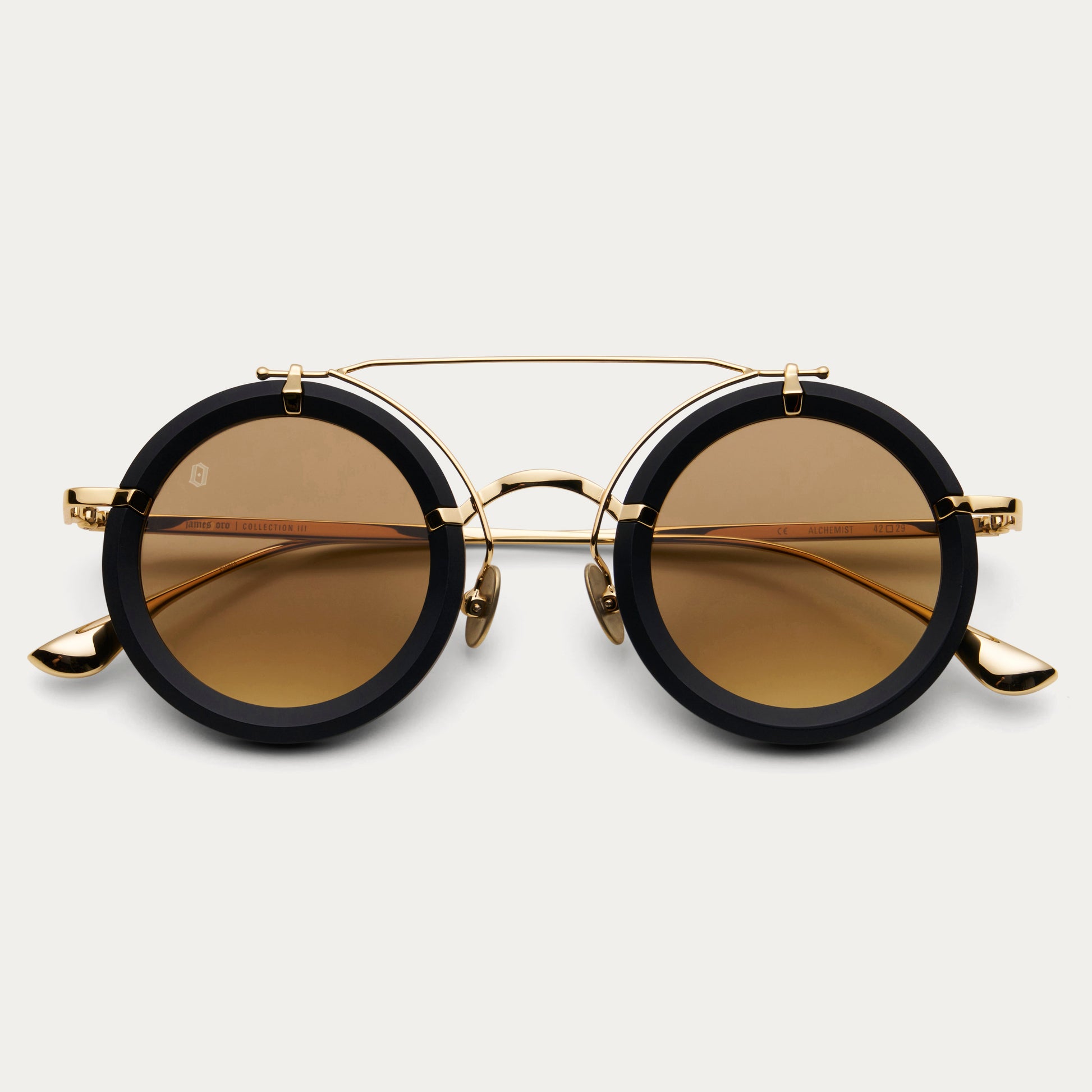 Inspired by vintage welding goggles, the Alchemist combines industrial boldness with modern luxury. Circular lenses, double bridge construction, and premium acetate blended with stainless steel define this lightweight yet striking frame, complete with UV400 protection.