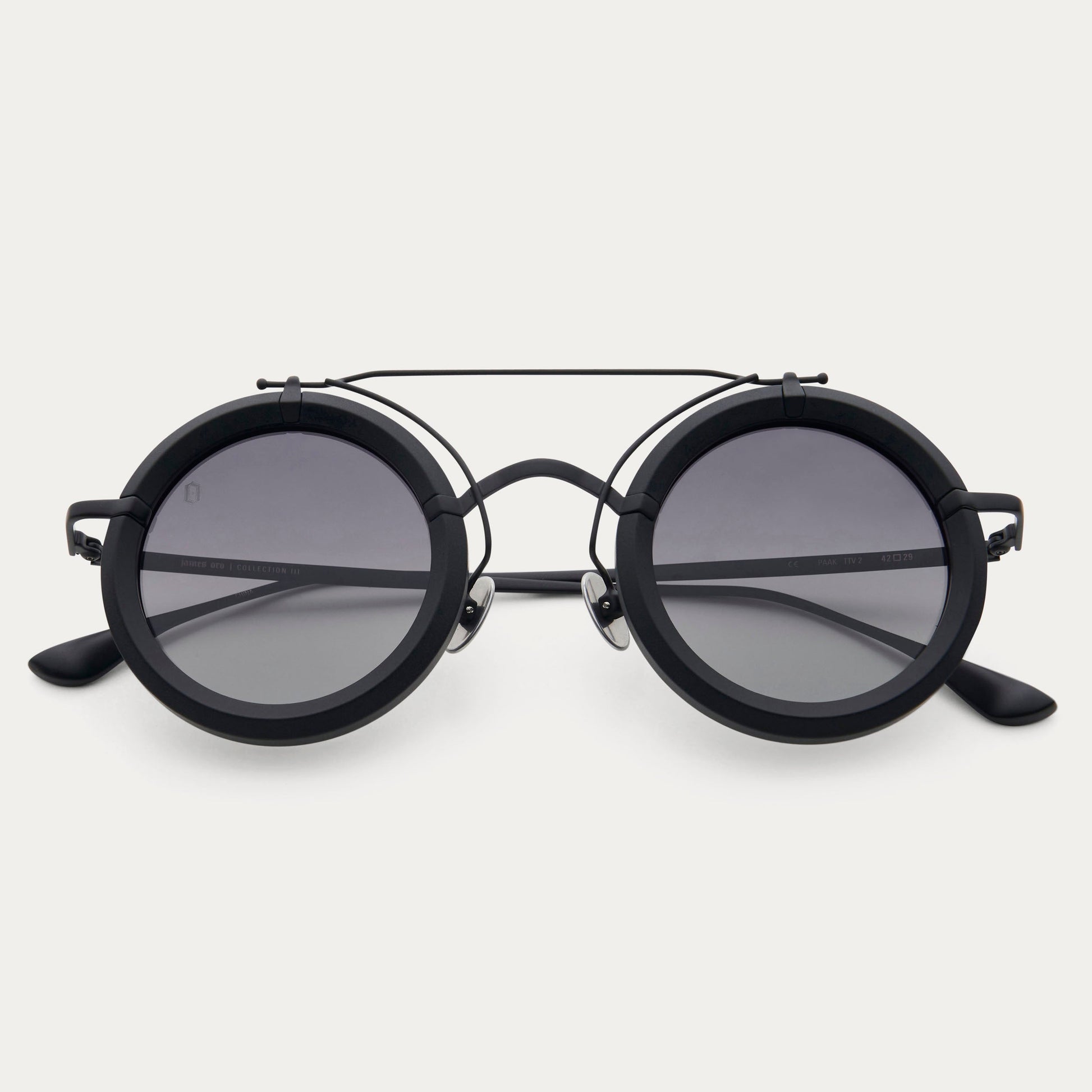Inspired by vintage welding goggles, the Alchemist combines industrial boldness with modern luxury. Circular lenses, double bridge construction, and premium acetate blended with stainless steel define this lightweight yet striking frame, complete with UV400 protection.