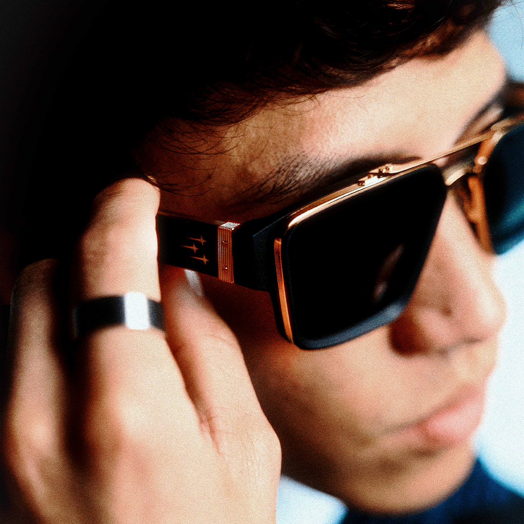 Nighthawk is a slightly oversized, mixed acetate and metal frame that redefines the classic aviator. Featuring a double bridge construction and detailed with titanium nosepads, metal rectangular spacers, and signature beveled temple tip cutouts, this frame is the perfect blend of boldness and sophistication.