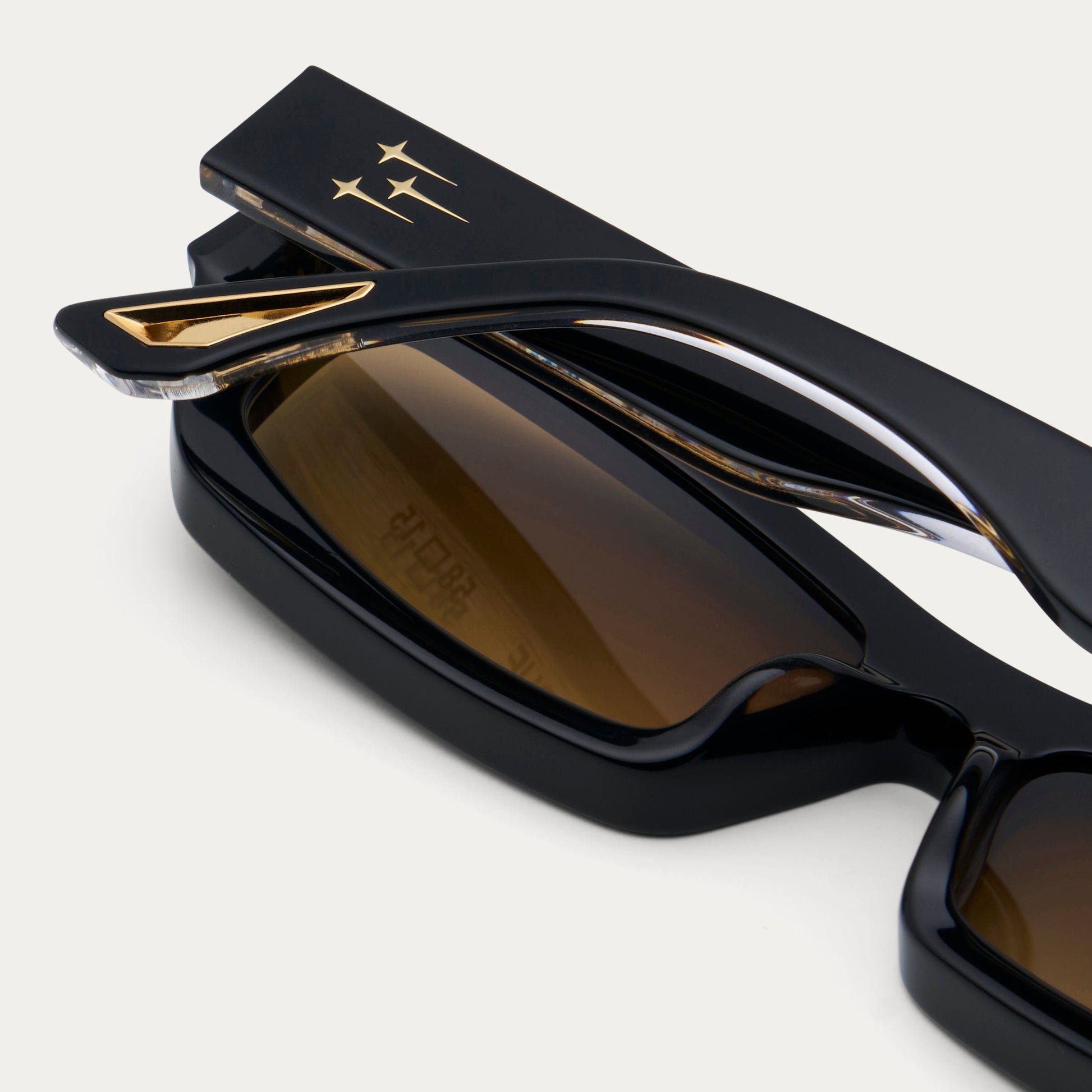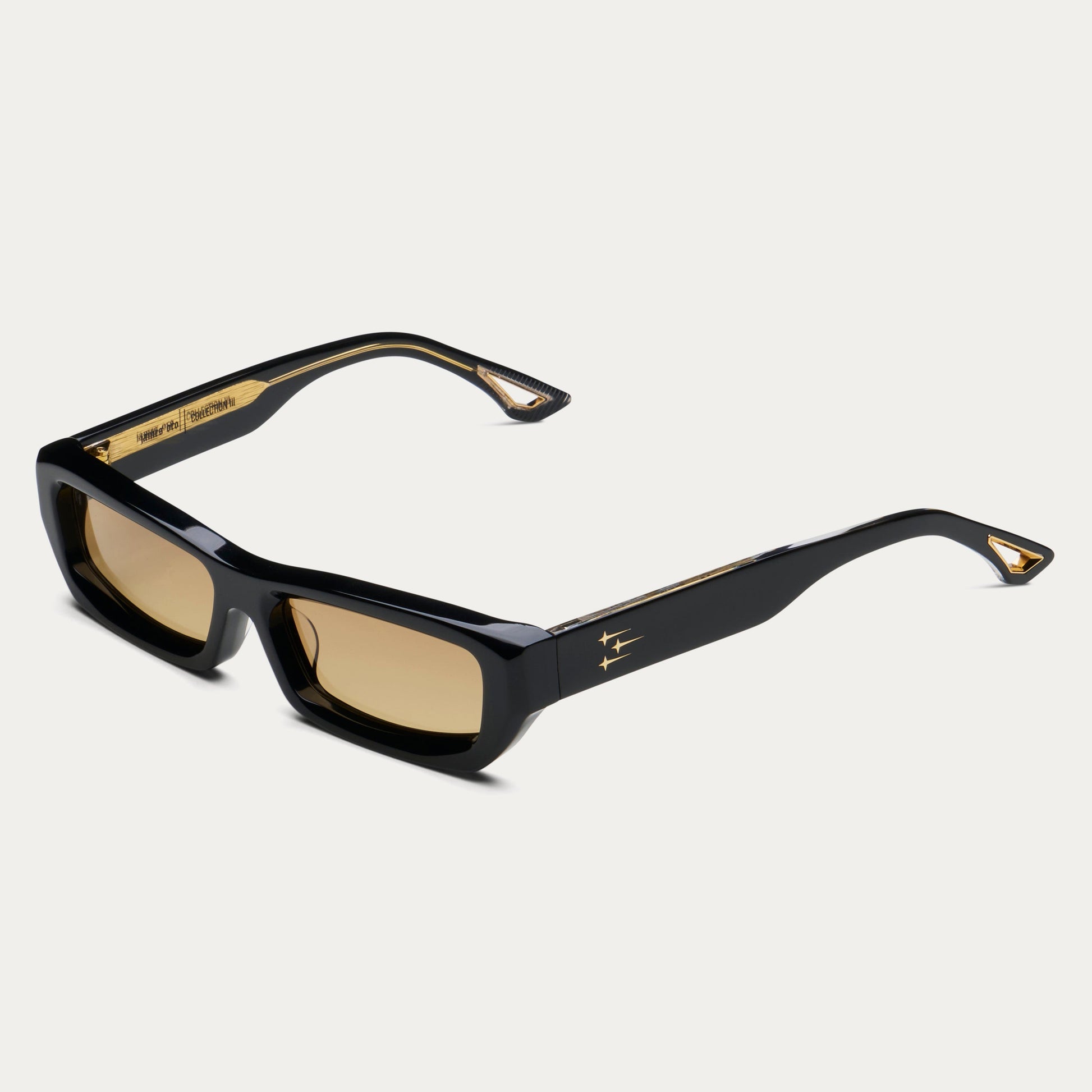 The Rogue is a sleek, skinny acetate frame with a subtle cat-eye flair, crafted from premium materials. Beveled edges, stainless steel temple tip cutouts, and the signature tri-star emblem add sophistication, while UV400 protective lenses provide ultimate clarity and style.