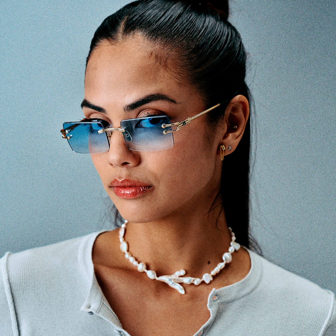 Meet a modern classic: An iconic rectangular rimless frame, the sleek Authentic II by James Oro comprises our signature "diamond" bevel-edge lens cut and logo-embossed tips. The frame is designed in 18KT gold or silver dipped iterations, and each temple is adorned with rope chain and logo details.