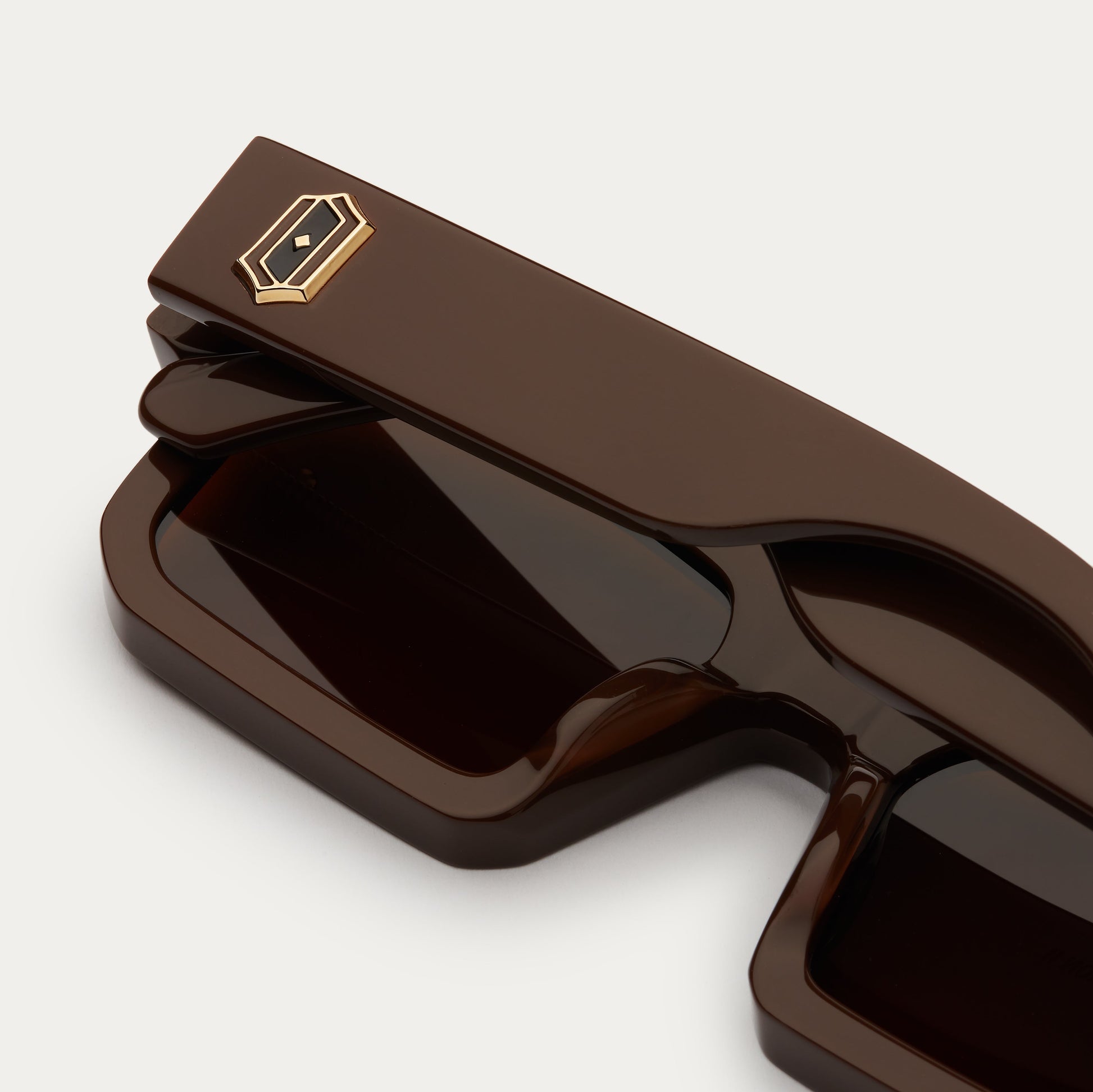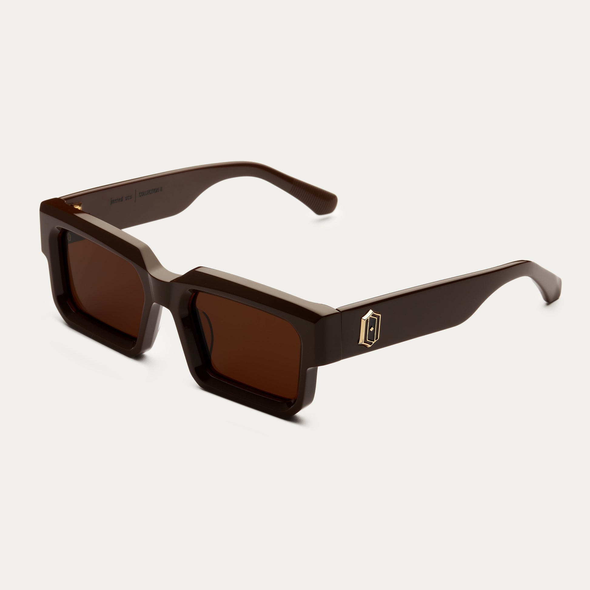 The Titan is a bold, rectangular frame crafted from premium 8mm thick beveled acetate, featuring a prominent bevel along the top-front for an unmistakable look. The signature enamel-filled, 3D "O" logo adorns the temples, while the engraved lines on the temple tips provide a secure and comfortable fit.