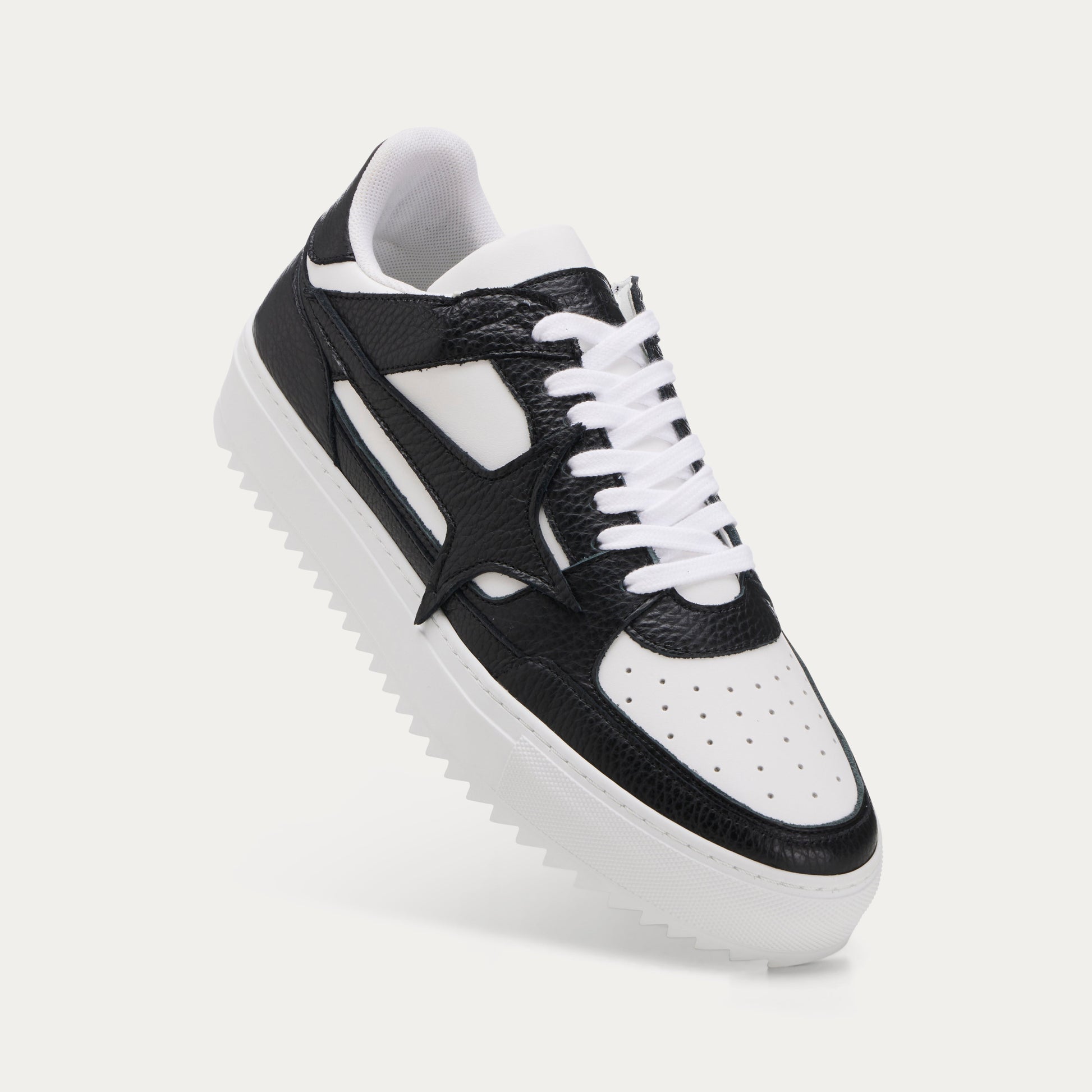 Over 2 years ago in the summer of 2021 we set out to develop the perfect everyday luxury sneaker. We wanted to combine familiar elements of sneakers we loved with premium materials & unique stand out details like the Margom Manufactured Jag Sole. Stiched along the outside of the sneaker is our shooting star motif handcrafted with premium tumbled leather. Designed in Los Angeles & Developed in Portugal.