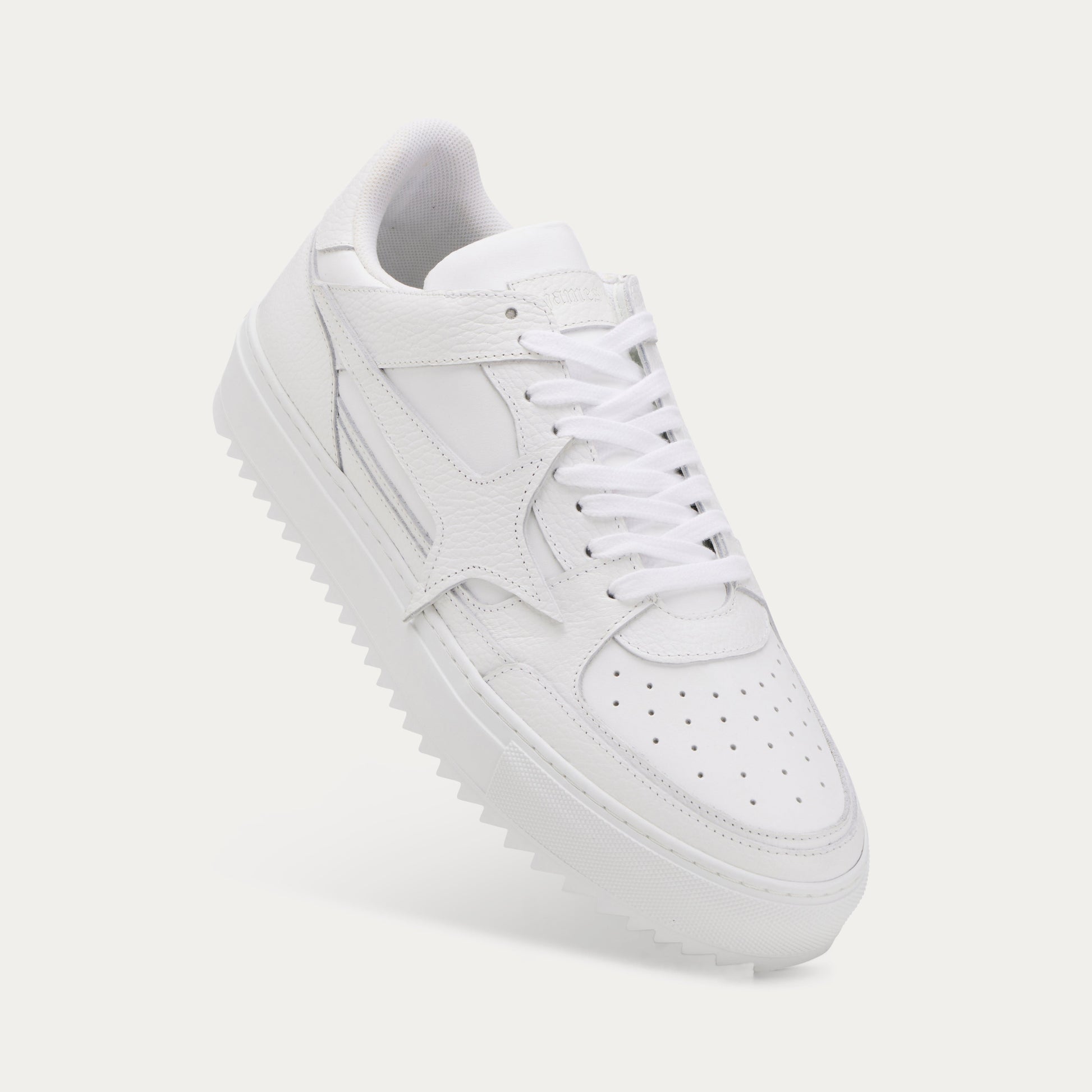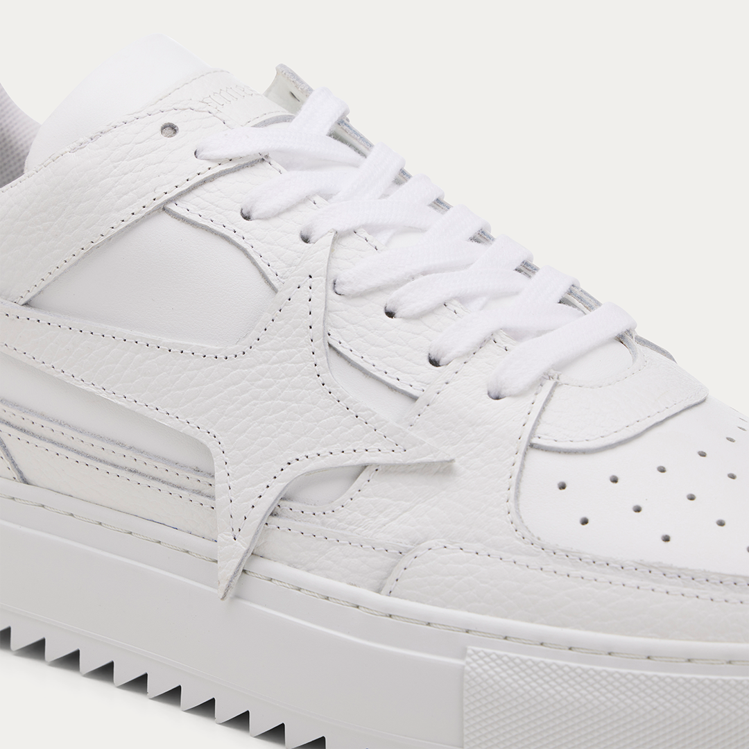 Over 2 years ago in the summer of 2021 we set out to develop the perfect everyday luxury sneaker. We wanted to combine familiar elements of sneakers we loved with premium materials & unique stand out details like the Margom Manufactured Jag Sole. Stiched along the outside of the sneaker is our shooting star motif handcrafted with premium tumbled leather. Designed in Los Angeles & Developed in Portugal.